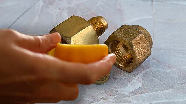 Sari lemon yang rasanya asam ini ternyata ampuh untuk menghilangkan karat pada kuningan, lho. Untuk menghilangkan karat pada kuningan dengan lemon, cukup lap kuningan tersebut dengan lap yang sudah dibasahi oleh sari lemon. Lakukan dengan hati-hati agar kuningan tidak tergores.