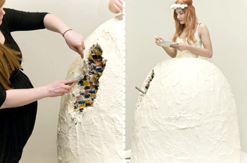 Ide unik lainnya datang dari desainer asal Islandia, Lukka Sigurdadottir. Wanita lulusan Iceland Academy of The Arts ini mengizinkan para tamu untuk memakan gaun pengantin yang dikenakan mempelai wanita. Hal tersebut bisa dilakukan karena bagian rok dari gaun pengantin yang diciptakannya terbuat dari cake yang manis, lezat dan creamy.
