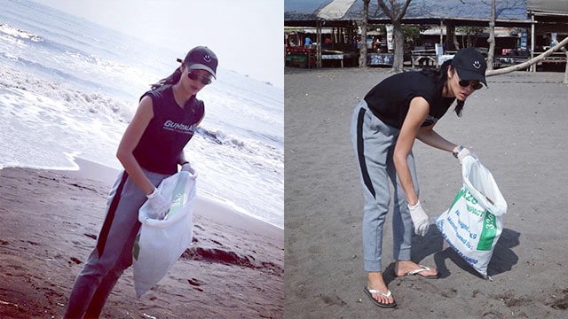 “Untuk saya sendiri, setiap hari membawa tumbler, tote bag, dan kontainer makanan. I try to not use single use plastic. Terus kalau memang lagi liburan, karung beras aku juga bawa,” ujar model yang hobi diving ini.