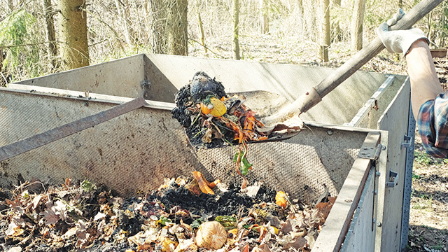 Udara sangat penting dalam proses komposting. Aliran udara dalam wadah komposting bisa dikelola dengan mengaduk kompos. Ketika kompos tidak diaduk, sampah organik akan berlendir. Mengaduk kompos dengan garpu rumput dan sekop memastikan udara dapat teralirkan dengan merata.