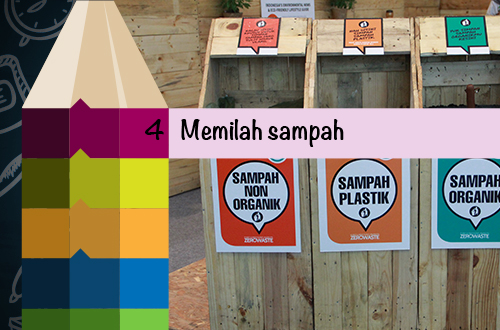 Mulailah membuang sampah pada tempatnya. Lebih dari itu, pilah sampah Sobat Greeners dan buang pada tempat yang sesuai. Sampah sisa makanan, dedaunan, sisa memasak, dan sampah basah lainnya, bisa Sobat Greeners kumpulkan ke dalam tempat sampah organik untuk selanjutnya diolah menjadi kompos. Sampah plastik, kertas, kaleng, masuk dalam tempat sampah anorganik. Sampah jenis ini dapat dikumpulkan di koperasi sampah untuk selanjutnya dijual ke pengepul. Dengan membuat koperasi sampah, Sobat Greeners akan belajar mengelola sampah dan uang sekaligus.