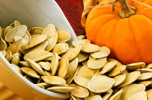 Biji labu mengandung asam amino tryptophan. Asam amino penting dalam produksi serotonin, salah satu zat yang akan mempengaruhi suasana hati (mood).