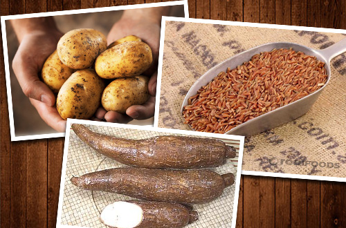 Untuk mengganti nasi putih, lanjut Nurul, bisa mencoba mengonsumsi beras merah. Meski termasuk jenis beras, beras merah memiliki IG yang lebih rendah dari nasi putih karena kandungan seratnya yang tinggi. Selain beras merah, Nurul juga menyebutkan bahwa singkong, ubi dan kentang yang direbus juga dapat menjadi alternatif sumber karbohidrat. Nilai IG dalam 100 gram masing-masing bahan pangan tersebut juga masih tergolong sedang.