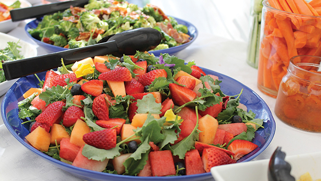 Bila makan buah-buahan dianggap membosankan, coba kreasikan buah-buahan menjadi salad buah. Salad buah bisa terdiri dari buah anggur, apel, strawberry, atau buah lainnya yang kita sukai. Kita dapat menggunakan mayones sebagai dressing untuk menambah rasa. Namun bila ingin lebih sehat, mayones dapat kita ganti dengan air perasan jeruk lemon atau jus jeruk. Supaya lebih lezat, berbagai topping seperti kismis atau kacang mete bisa juga kita tambahkan. Enak, segar, dan sehat!