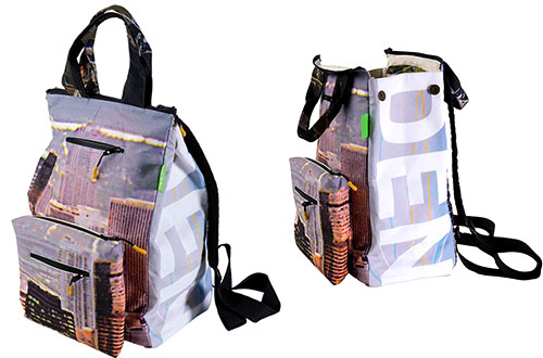 Travel bag yang diciptakan sengaja didesain agar cocok ditempatkan di bawah bangku pesawat, wearable dan tahan lama. Seluruh tas tersebut dijahit khusus dengan menggunakan tangan dan setiap tas memiliki corak yang berbeda satu sama lain. Banner-banner tersebut disulap menjadi beberapa jenis tas, seperti travel duffel bag, backpack dan over shoulder bag tempat menaruh paspor, uang dan lain-lain.