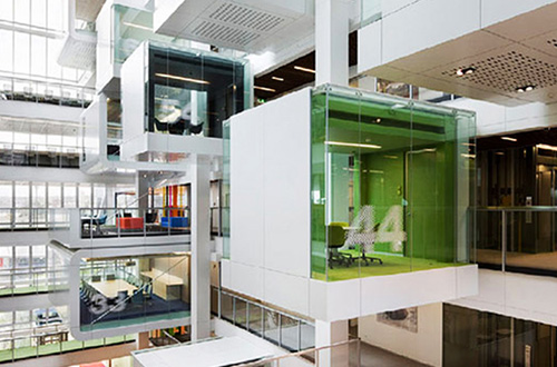 Firma Clive Wilkinson Architects mendesain ulang kantor pusat Bank Macquarie di Sydney, Australia. Hasilnya adalah berkurangnya pemakaian energi sampai 50 persen. Didesain sebagai tempat kerja kolaboratif, bangunan 10 lantai ini diantaranya berisi atrium yang berisi 26 tempat rapat kecil.