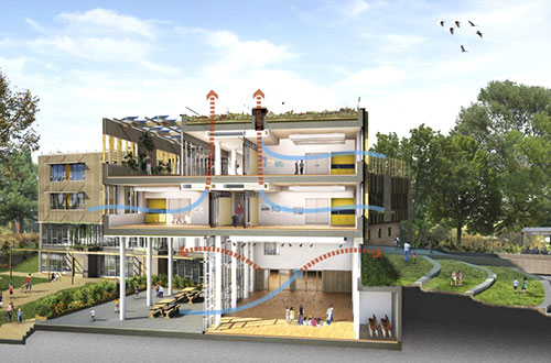 Bangunan sekolah yang inovatif ini adalah hasil rancangan Penoyre & Prasad dan merupakan bagian dari pembangunan berbasis negatif karbon yang lebih luas. Bangunan sekolah ini berlokasi di Crouch Hill Community Park di London Utara, sebuah lanskap yang kaya secara ekologis dan merupakan aset komunitas yang dialihfungsikan dari sisa-sisa Metropolitan Open Land. Bangunan baru ini dioptimasikan untuk pencahayaan alami di siang hari namun tetap menjaga privasi sambil meminimalkan panas yang timbul dari matahari.