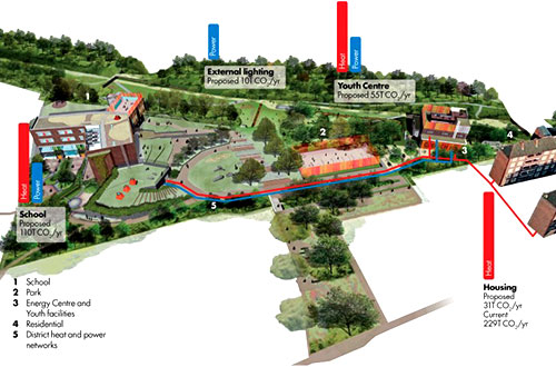 Selain konservasi energi, sekolah ini juga memproduksi energinya sendiri. Dengan sumber energi terbarukan yang dipakainya, plus pemakaian sistem CHP (combine heat and power) berbasis gas, Ashmount Primary School menghasilkan energi dan panas yang tidak hanya bisa dipakai sendiri tapi juga bisa diekspor ke bangunan hunian di sekitarnya.
