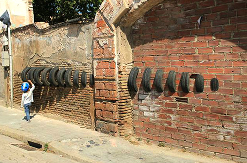 Ban bekas dalam berbagai ukuran digunakan kembali menjadi sebuah desain menarik yang dipasang di jalan, tangga dan rampa di bekas daerah industri bernama Sant Marti. Penempatan instalasi ini sedemikian strategis sehingga membawa kesegaran baru di lansekap kota yang terlupakan ini.