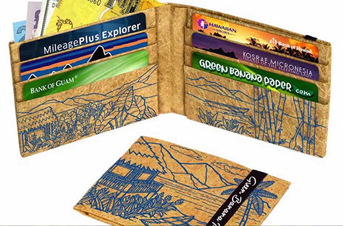 Lupakan plastik dan kulit binatang, sebuah dompet di masa depan terbuat dari bahan yang lebih aman untuk lingkungan yaitu serat pohon pisang. Adalah Kosrae, sebuah perusahaan rintisan dari Mikronesia, membuat produk bernama Green Banana Paper. Produk ini merupakan hasil dari limbah pohon pisang yang banyak terdapat di sana, namun diolah sedemikian rupa sehingga menjadi dompet kulit vegetarian yang kuat dan bergaya.
