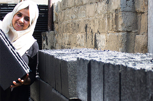 Majd dan Rawan juga menaruh perhatian terhadap hasil sampingan dari pembakaran batubara, yang mereka sebutkan sebanyak 10 ton abu batubara dibuang di Gaza setiap minggunya dan mencemari sumber air tanah mereka. Selama berbulan-bulan mereka meneliti cara ntuk menggantikan batu dan pasir dengan abu batubara dan puing untuk dijadikan bata ringan.