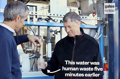 Dalam rangka ikut berpartisipasi menyelamatkan bumi, Bill Gates baru-baru ini meminum air yang berasal dari teknologi daur ulang air limbah manusia. Ia mengunjungi sebuah tempat di mana terdapat mesin yang dinamai Omniprocessor, mesin ini dapat mengubah air kotor menjadi air konsumsi.