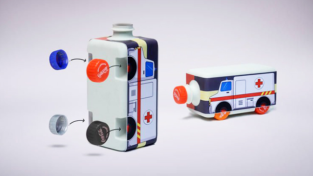 Setelah isinya dikonsumsi, kemasan minuman soda biasanya berakhir menjadi sampah dan mencemari lingkungan karena dibuang sembarangan. Materialnya yang terbuat dari plastik menyulitkan kemasan ini terurai di alam. Di tangan Maurizio Bricola, kemasan botol bekas berubah menjadi mainan edukatif untuk anak.