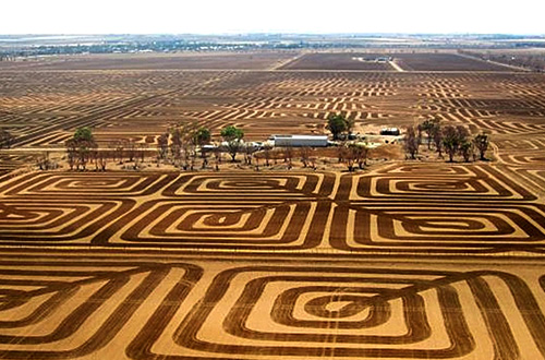 Seorang petani di Australia Selatan sedang berjuang menghadapi erosi tanah. Dengan cerdik ia menggunakan pola-pola geometris pada tanah garapannya. Brian Fischer adalah petani yang tanah garapannya berada sekitar 60 kilometer di utara Adelaide, Australia. Pria tersebut mendapat ide kreatif yang secara visual sangat mengagumkan. Pola geometris yang ia buat disebut-sebut seni sekaligus upaya penyelamatan lingkungan yang cerdas.
