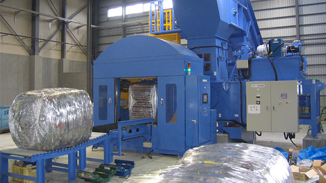Limbah plastik tersebut kemudan dimasukkan ke dalam mesin berukuran besar. Mesin ini tersusun atas dua mesin, yaitu mesin penghancur (crusher) dan mesin pres atau pencetak. Oleh mesin penghancur, limbah plastik dihancurkan hingga berukuran 150 milimeter, kemudian dihancurkan kembali hingga berukuran kurang dari 50 milimeter. Ukuran ini merupakan standar yang ditetapkan oleh pemerintah Jepang.