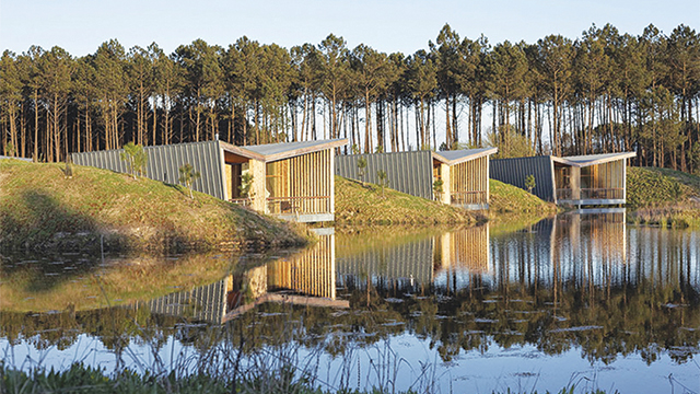 Perusahaan arsitektur yang berbasis di Bayonne, Perancis, Patrick Arotcharen Architecte membangun resort yang berlokasi di Saubion, Perancis. Bukan sembarang resort, Les Echasses diciptakan dengan konsep ramah lingkungan atau yang sering disebut eco-lodges.