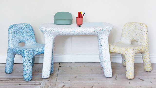 Baru-baru ini, duo desainer yang berbasis di Antwerpen, Joris Vanbriel dan Vanessa Yuan telah menciptakan furnitur daur ulang dari 100 persen limbah plastik dari mainan anak-anak. Melalui ecoBirdy, perusahaan yang mereka dirikan sejak 2017, mainan plastik bekas yang dulunya sering dibuang kini disulap menjadi furnitur anak-anak yang penuh warna, unik, nyaman dan mudah dibersihkan.