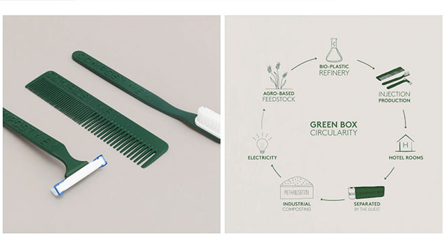 Green Box adalah kit fasilitas hotel sirkular yang berisi barang-barang kamar mandi yang terbuat dari plastik yang dapat terurai menjadi kompos. Rancangan ini ada untuk membantu menangani sampah plastik di industri perhotelan. Di dalam kitnya, terdapat barang-barang seperti sisir, sikat gigi, pisau cukur, dan dua korek kuping.