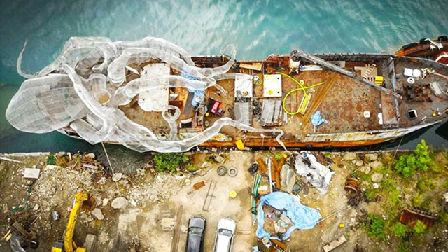 Struktur rangka baja yang menempel di beton itu membentuk gurita raksasa dengan tentakel berukuran 25 meter. Tentakel yang menjulur sepanjang kapal Kodiak Queen ini merupakan bagian terakhir dari reformasi kapal tersebut. Para seniman telah menghabiskan waktu berbulan-bulan untuk membersihkan kapal tersebut dan mengubah ruang-ruang di dalamnya menjadi tempat instalasi seni yang interaktif untuk para penyelam dari seluruh dunia.