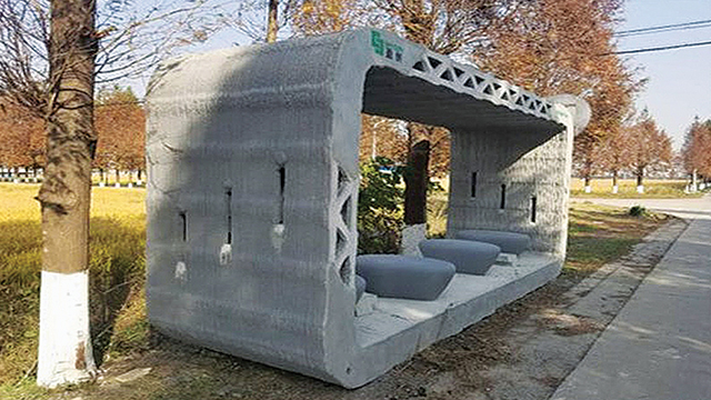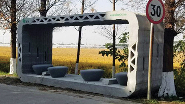 Di kota Fengjing, Shanghai, Tiongkok, terdapat halte bus pertama di dunia yang diproduksi menggunakan teknologi pencetakan tiga dimensi (3D). Bentuknya serupa balok-balok beton. Halte bus keluaran Winsun ini dicetak menggunakan material konstruksi bekas.