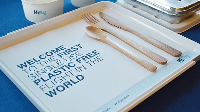 Dilansir dari Green Matters, Hi Fly telah berhasil melakukan percobaan penerbangan tanpa plastik pertamanya pada rute penerbangan Lisbon ke Natal, Brasil. Barang di dalam pesawat yang biasanya terbuat dari plastik diganti dengan barang alternatif yang lebih ramah lingkungan.
