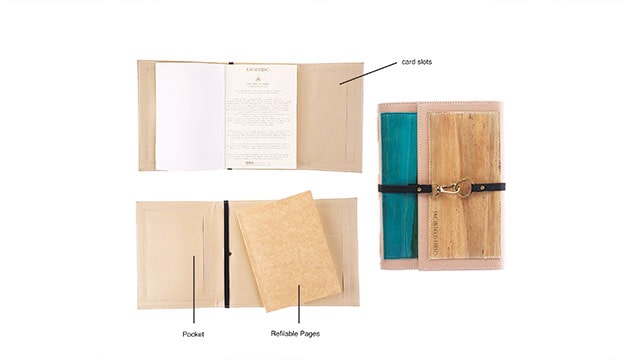 Kertasnya bisa untuk semua media penulisan, termasuk cat air. Jurnal ini juga memiliki fitur-fitur khusus. Misalnya, cover jurnal yang dapat Anda kreasikan, terdapat kantong di dalamnya untuk menyimpan kartu atau dokumen lain, dapat Anda isi ulang, serta tahan air.