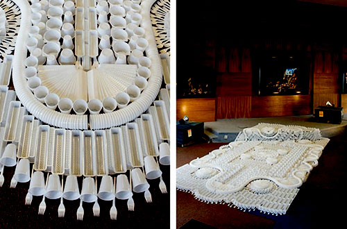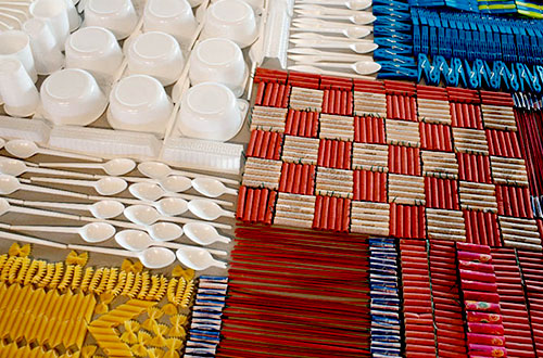 Permadani terbuat dari bahan sehari-hari macam permen, sendok, kertas A4, pasta mentah, pinsil gambar. Ada permadani seperti itu? Tanyakan pada trio desainer asal Belanda: Marcia Nolte, Stijn van der Vleuten dan Bob Waardenburg. Mereka bertiga membentuk studio bernama We Make Carpet. Karpet yang dibuat dengan teknik menenun.