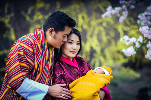 Ratu Jetsun Pema menggendong anak pertamanya, pangeran Gyalsey. Kerajaan Bhutan bertekad membangun sebuah negara yang bahagia dan ramah lingkungan. Foto: Jetsun Pema/Facebook