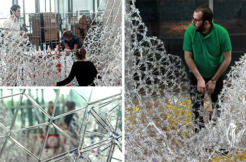 Karya ini dibuat dengan metode modul tetrahedron yang bebas lem. Setiap modul dibuat dari tiga buah BIC Cristal yang dihubungkan dengan penyambung di bagian atasnya dan plexiglass berbentuk segitiga di bagian bawah. Plexiglass ini dipotong oleh laser dan berfungsi seperti dasar piramida.