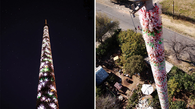 Untuk membangkitkan kesadaran akan masalah yang ditimbulkan oleh botol plastik bekas dan polusi yang dihasilkannya, seorang seniman dengan nama “r1” membuat sebuah proyek untuk mengubah 7.000 botol plastik bekas menjadi sebuah benda monumental: patung setinggi 20 meter.