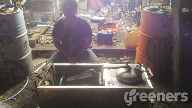 Dimas akan menepuh 1.200 kilometer dengan alat pengubah bahan bakar sampah plastik portabel ciptaannya. Foto: greeners.co/Dewi Purningsih