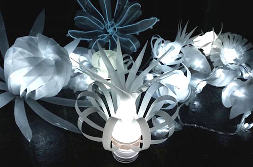 Nottingham, sebuah kota di timur Inggris mengadakan acara tahunan yang unik bernama “Light Night”. Beberapa orang terlibat di dalamnya, termasuk Sarah Turner yang memboyong karyanya berupa ribuan bunga lampu LED dari botol plastik.