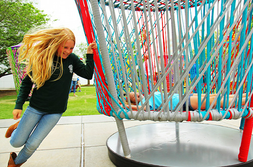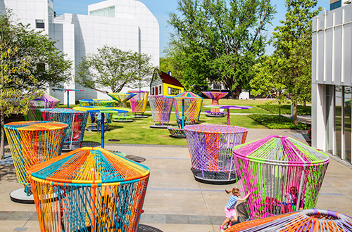 Keceriaan Meksiko yang tertuang dalam aneka warna tersebut memberi inspirasi bagi duo desainer kontemporer Meksiko, Héctor Esrawe dan Ignacio Cadena. Mereka berdua bertugas untuk menciptakan karya seni interaktif yang akan ditempatkan di luar ruangan salah satu area kampus Woodruff Art Center. “Los Trompos” (The Spinning Tops) menjadi karya dari tugas mereka tersebut. Setelah pameran di Woodruff Art Center, “Los Trampos” berpindah lokasi ke Sifly Piazza di High Museum of Art kota Atlanta, Georgia.