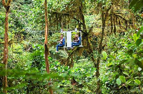 Mashpi Lodge Reverse di Quito, Ekuador adalah contoh terbaik wisata alam dari ketinggian. Wisatawan dapat menjelajahi wilayah hutan Andean Cloudforest dengan menaiki Sky Bike, sepeda dengan dua kursi bertenaga manusia dan dipasang melintasi Cloudforest.