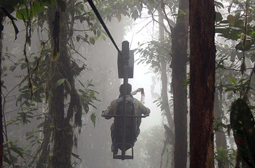 Di atas ketinggian 60 meter, Sky Bike melintasi kanopi hutan Andean Cloudforest. Foto: www.mashpilodge.com