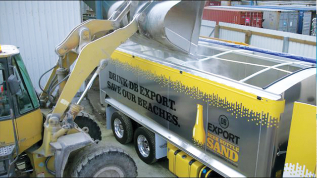 Sebuah perusahaan bir asal Selandia Baru membantu memerangi krisis pasir global (global sand shortage) di negaranya. Slogan “Minum bir dan selamatkan lingkungan” menjadi kalimat yang dikampanyekan perusahaan DB Export Beer Bottle Sand.