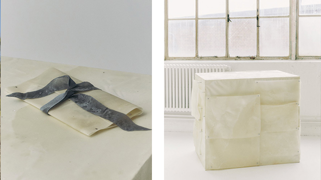 Sebagai elemen dekoratif, Natural Material Studio juga menggunakan pita cantik warna batu bara dengan desain serupa dari bahan Procel yang lebih lembut dan diikatkan di sekitar produk.