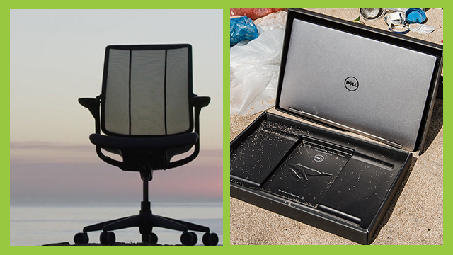 Sampah plastik yang dikumpulkan oleh Next Wave dari lautan diubah menjadi berbagai produk, diantaranya kursi kantor dan kemasan laptop. Foto: NextWave Plastics
