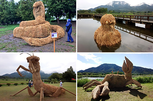 Untuk perayaan Festival Wara Art tahun ini, patung jerami yang dibuat antara lain T-Rex yang sedang mengaum, Triceratops, belalang sembah, bahkan bebek yang sedang berenang. Sedangkan pada tahun sebelumnya, para seniman di sana membuat karya-karya seperti gorila, pegulat sumo, hingga monster mirip yeti dengan mulut sebesar gua yang bisa dimasuki orang.