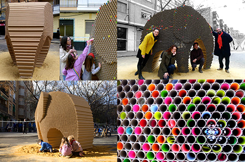 Studio Nituniyo menyusun lebih dari 6.000 tabung kertas bekas untuk membuat patung gajah. Tabung kertas bekas tersebut mereka kumpulkan dan disusun menjadi sebuah patung untuk mengikuti Festival Valencia Fallas yang diselenggarakan pada bulan Maret 2015 lalu. Festival Valencia Fallas sendiri adalah festival tahunan yang mempertontonkan pesta kembang api, aneka macam pesta, dan banyak pameran instalasi temporer.