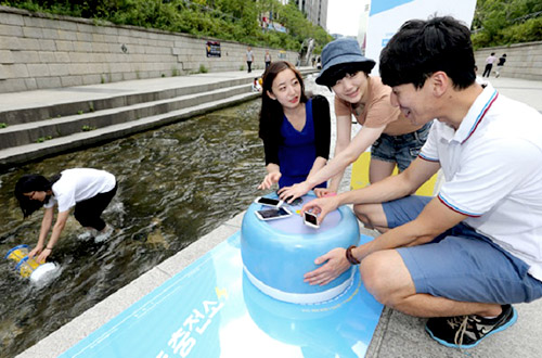 Ibu kota telepon pintar dunia telah menemukan cara yang inovatif dan ramah lingkungan untuk mengisi ulang daya perangkat Samsung dan perangkat mobile lainnya. Seoul, ibu kota Korea Selatan, telah merencanakan untuk memasang lima stasiun pengisi daya perangkat elektronik yang tenaganya berasal dari tiga turbin hidroelektrik mini yang tertanam dalam sungai Cheonggyecheon. Air dari sungai buatan ini mengalir melintasi pusat kota.
