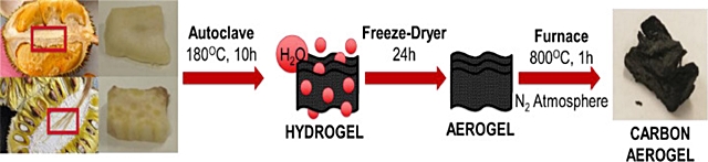 Untuk prosesnya buah dipilih berdasarkan luas permukaan yang besar. Kemudian limbah buah diubah menjadi karbon aerogel menggunakan metode yang tidak beracun. Lalu aerogel dikeringkan dan diubah menjadi elektroda yang diuji sifat penyimpanan energinya.