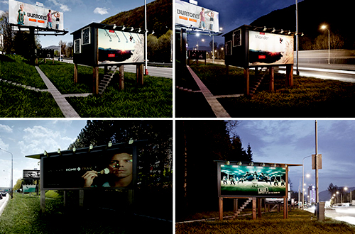 Sebuah firma Slovakia, Design Develop, menawarkan gagasan inovatif untuk menyediakan tempat tinggal bagi para tunawisma, yaitu di dalam billboard. Project Gregory, nama yang diberikan untuk gagasan inovatif ini, merupakan sebuah hunian terpadu berbentuk segitiga yang biayanya termasuk dalam harga sewa media iklan pada dinding eksteriornya.