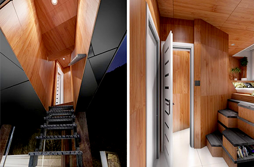 Agar strukturnya cocok, dimensi billboard tetap dipertahankan, hanya sebuah tangga kecil ditambahkan untuk mengakses bagian dalam hunian unik ini. Interior lantainya mengikuti bentuk segitiga struktur bangunan.