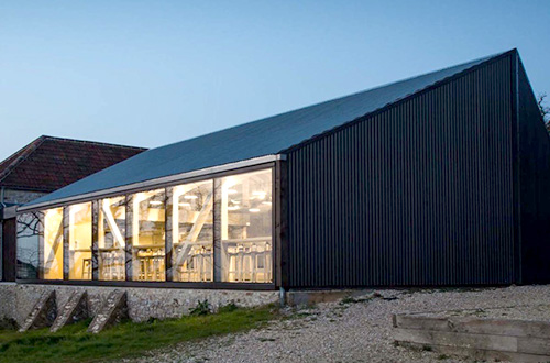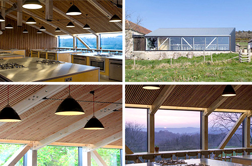 Bangunan ini terletak di Devon, barat daya Inggris, dan mengombinasikan arsitektur vernakular setempat dengan bahan bangunan berkualitas tinggi dengan teknologi berkelanjutan. Terdiri dari lima bangunan, termasuk diantaranya rumah perkebunan yang berasal dari abad ke-17 dan gudang yang dibangun di abad ke-18. Namun yang paling menarik adalah bangunan baru yang didirikan untuk sekolah memasak River Cottage Cookery School.