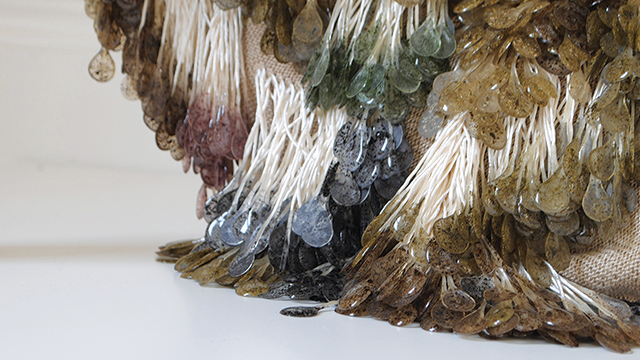 “Saya dengan cepat jatuh cinta dengan serat dan benang rumput laut karena kualitas alaminya dan penampilan dan rasanya seperti sutera,” tutur seniman yang berbasis di Edinburgh, Inggris ini.