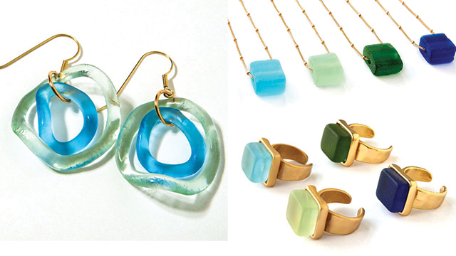 Pertama-tama, Plate memotong dan membakar kaca melalui proses yang telah terpaten. Setelah itu, hasilnya adalah perhiasan indah yang menyerupai kaca laut. Plate berbicara dengan Inhabitat tentang perusahaannya dan bagaimana rasanya menjadi perajin perhiasan ramah lingkungan profesional.