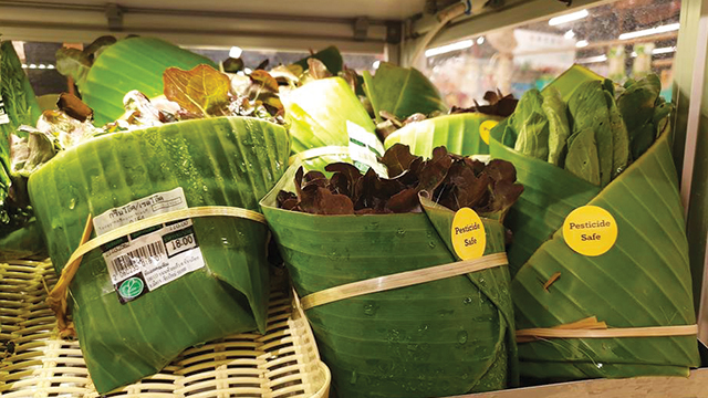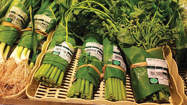 Tren mengurangi penggunaan kemasan plastik belakangan ini sedang meningkat di toko-toko kelontong atau supermarket di seluruh dunia. Banyak toko dan produsen makanan yang berupaya mencari ide dan cara baru untuk memerangi penggunaan kemasan plastik ini. Seperti yang dilakukan oleh Rimping, salah satu toko bahan pangan yang berlokasi di Chiang Mai, Thailand. Toko ini mulai menggunakan daun pisang untuk membungkus buah dan sayur sebagai pengganti kemasan plastik.