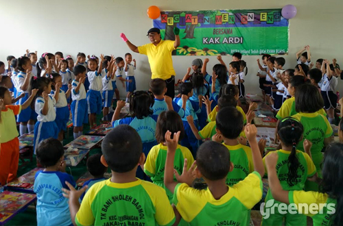 Semangat Ardi seakan tidak pernah kendur. Saat ditemui Greeners, Ardy bersama seorang rekannya begitu semangat bertutur didepan puluhan murid taman-kanak-kanak yang diundang langsung oleh pengelolah Ruang Publik Terpadu Ramah Anak (RPTRA) Rawa Buaya dalam rangka memeriahkan hari anak sedunia Desember lalu.