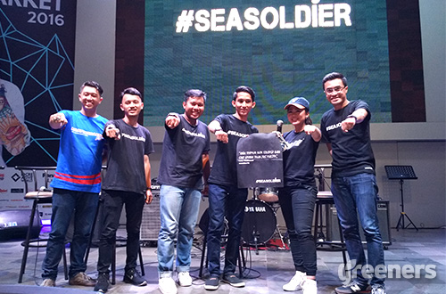 Beberapa anggota Sea Soldier saat mengisi acara Boys Market 2016 di Gandaria City, Jakarta Selatan. Mereka mengajak pengunjung acara untuk melakukan aksi nyata bagi lingkungan. Foto: greeners.co/Arief Tirtana